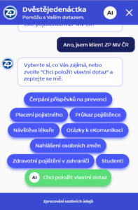 Chatbot na báze umelej inteligencie pre Zdravotnú poisťovňu ministerstva vnútra ČR (ZP MV ČR)